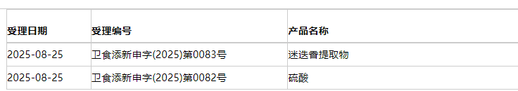 近日,國家衛生健康委員會政務服務平臺發布三新食品受理情況,新增3款食品添加劑新品種受理。
