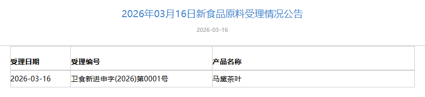 2 | 2026-03-16 | 衛食新進申字(2026)第0001號 | 馬黛茶葉 |