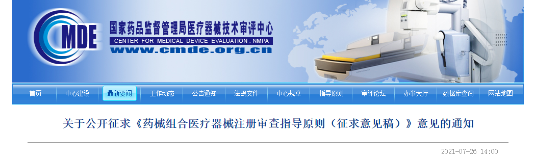 關于公開征求《藥械組合醫療器械注冊審查指導原則(征求意見稿)》意見的通知