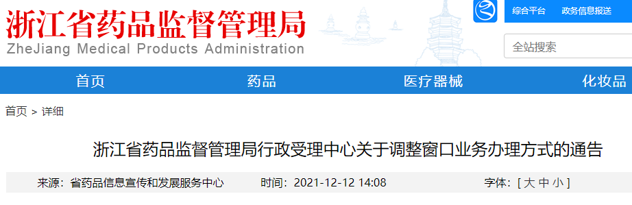 根據我省新冠疫情防控工作需要,最大限度減少人員流動聚集,經研究,自2021年12月13日起,浙江省藥品監督管理局行政受理中心窗口業務作如下調整: