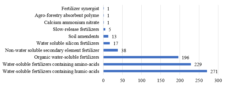 - Water-soluble fertilizers containing amino acids: 271 registrations.
