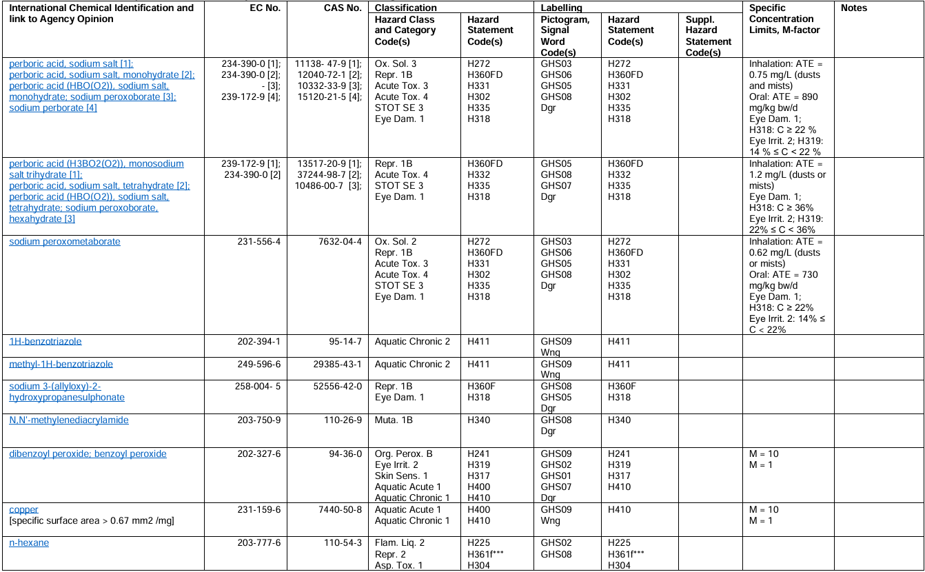 You can find the full list here: https://view.officeapps.live.com/op/view.aspx?src=https%3A%2F%2Fwww.hse.gov.uk%2Fchemical-classification%2Fassets%2Fdocs%2Fmcl-list.xlsx&wdOrigin=BROWSELINK