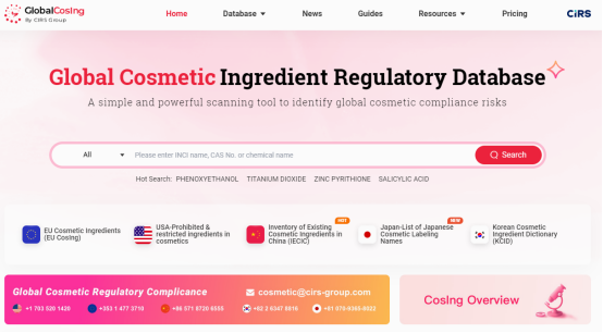 Global CosIng, independently developed by CIRS Group, serves as a one-stop search tool for global cosmetic compliance information. You can visit Global CosIng and find out more via the following link: https://globalcosing.chemradar.com/